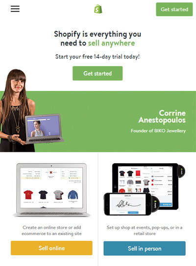 第一眼看到 Shopify 這個(gè)網(wǎng)站的時(shí)候,充滿(mǎn)了小清新的感覺(jué),采用綠色調(diào)的色彩搭配,使網(wǎng)站充滿(mǎn)了活力。其網(wǎng)站制作采用了國(guó)外已經(jīng)流行的 Html5 技術(shù),并且實(shí)現(xiàn)了響應(yīng)式布局,無(wú)論我們?cè)赑C電腦、筆記本電腦、Pad,還是手機(jī)上看,都可以獲得完美的視覺(jué)體驗(yàn)。